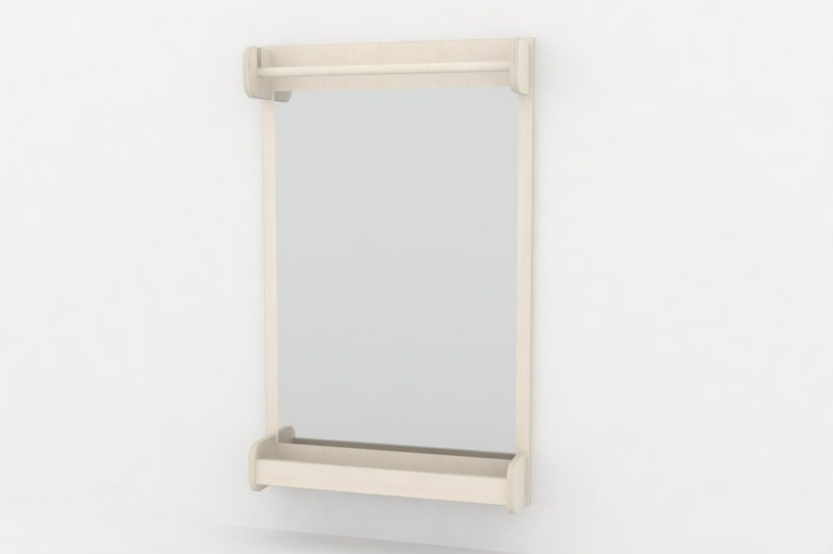 Die wandmontierte Staffelei mit Metallplatte besteht aus 15 mm starkem, weiß pigmentiertem Birkensperrholz und bietet Platz für eine Papierrolle.