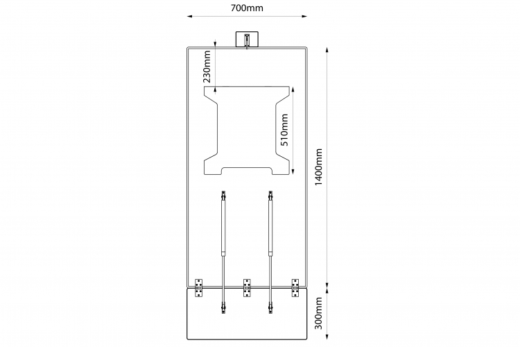 Ziel: Höhe: 530mm. Länge: 1400 mm. Breite: 700mm.