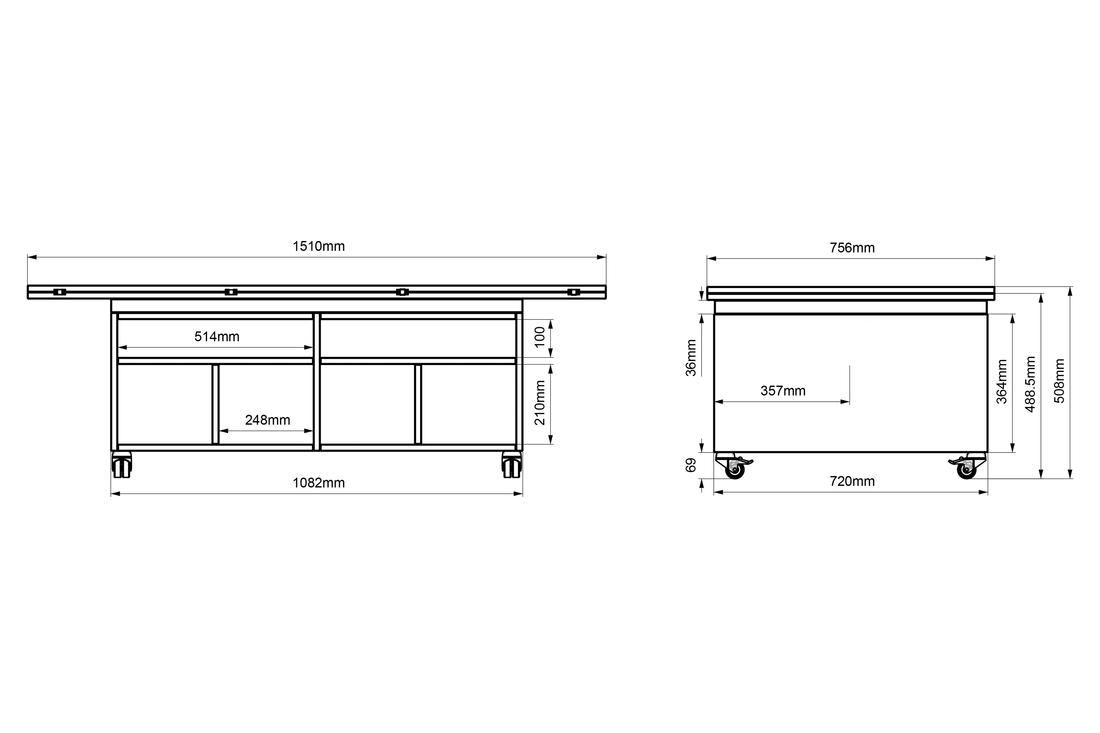 Goal: Height: 488/508mm. Width: 1500mm. Depth: 1500mm.