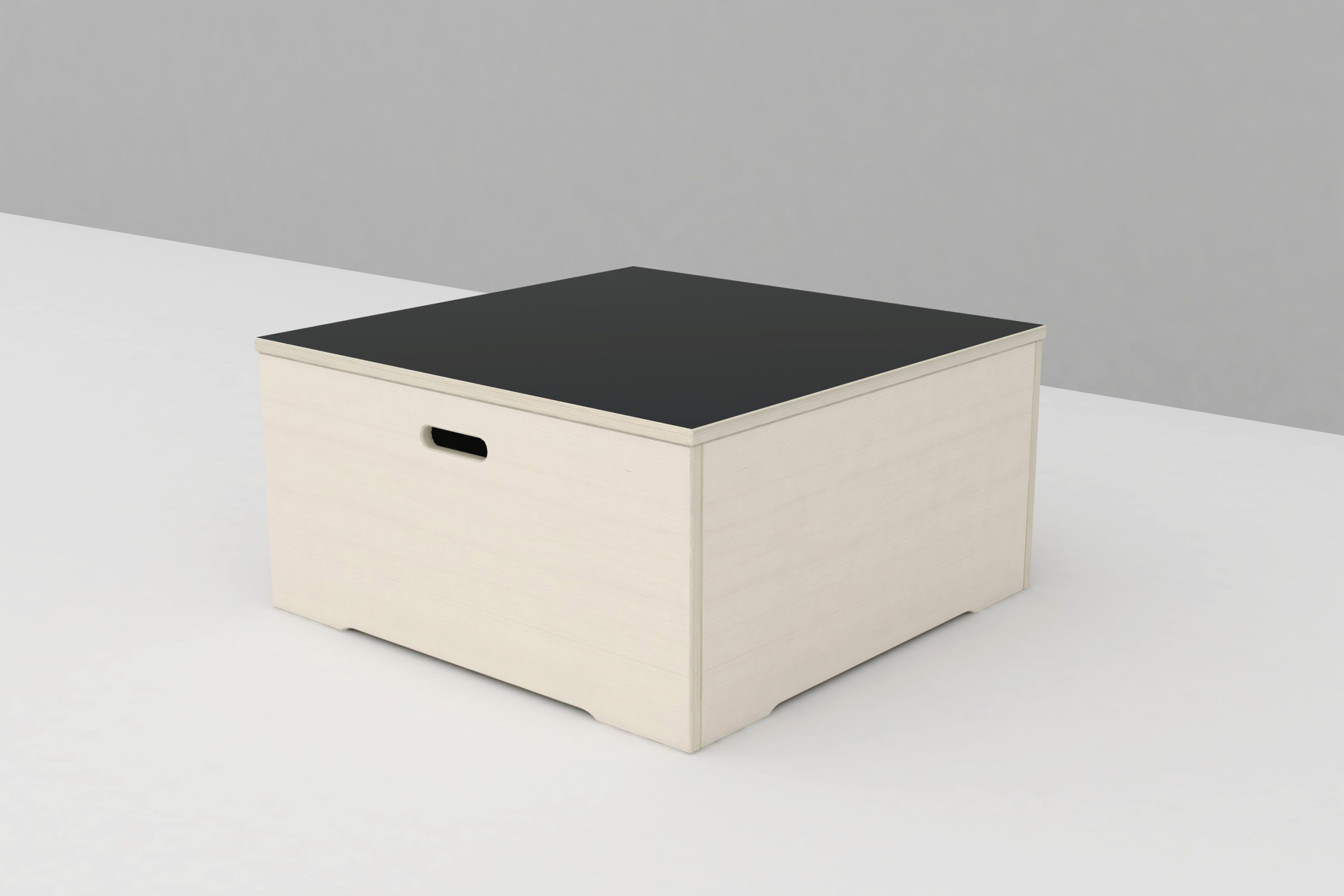 Stage box in 15mm white-pigmented birch plywood with durable black laminate on top.