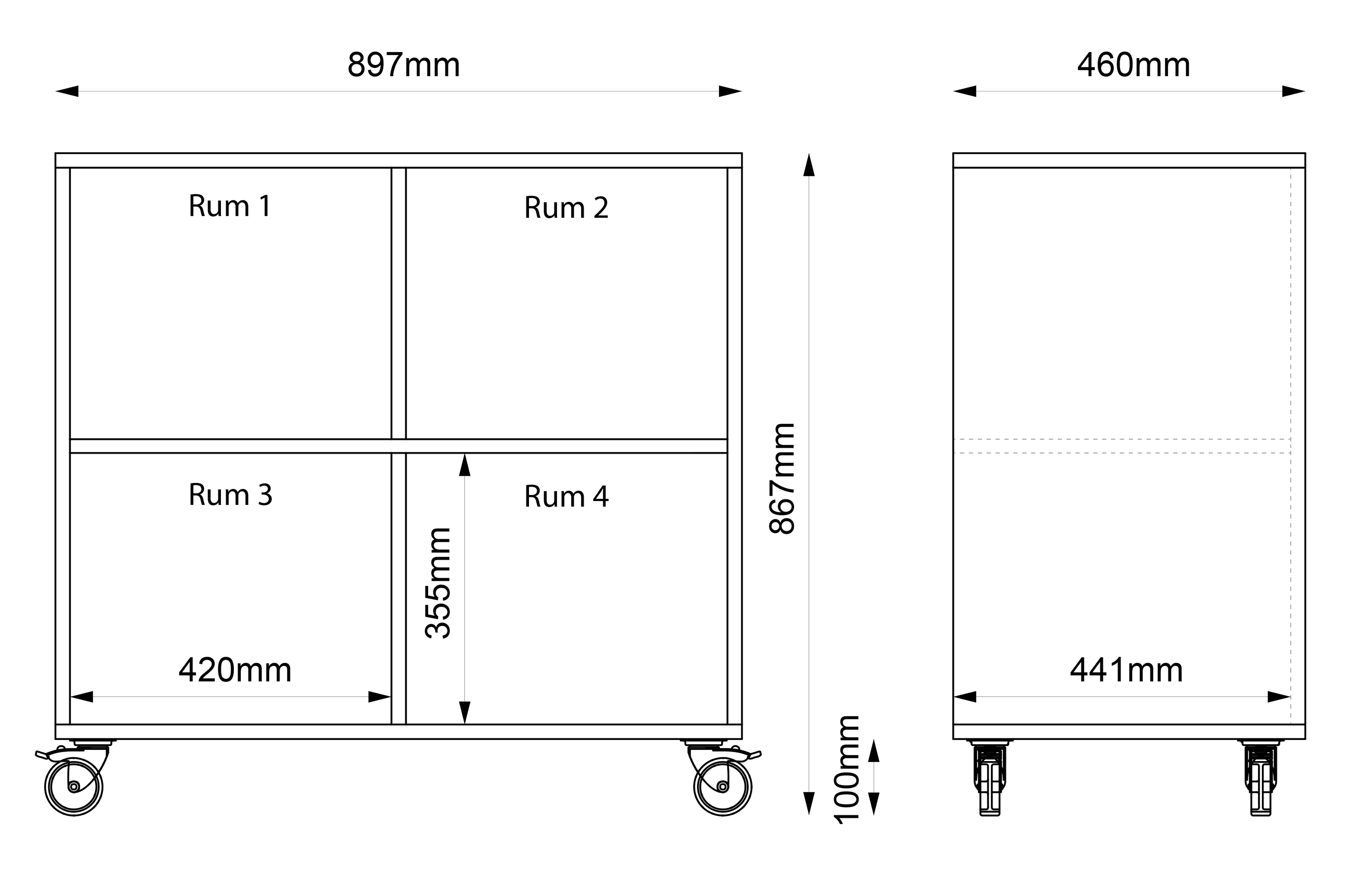 • Wordt geleverd met stevige, vergrendelbare wielen en een 19 mm achterpaneel.
