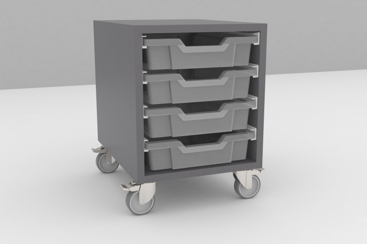 • Leveres med kraftige låsbare hjul og med 19mm bagbeklædning.