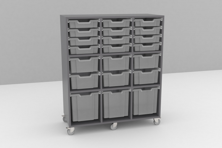 • Leveres med kraftige låsbare hjul og med 19mm bagbeklædning.
