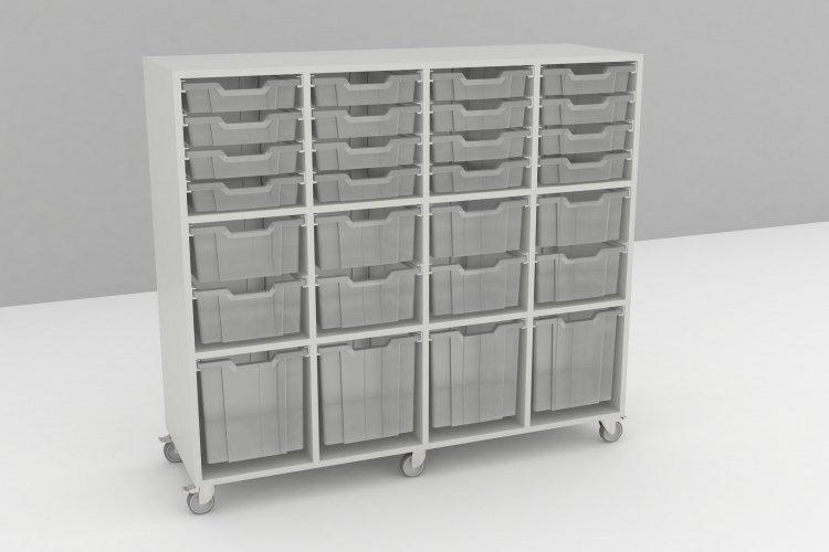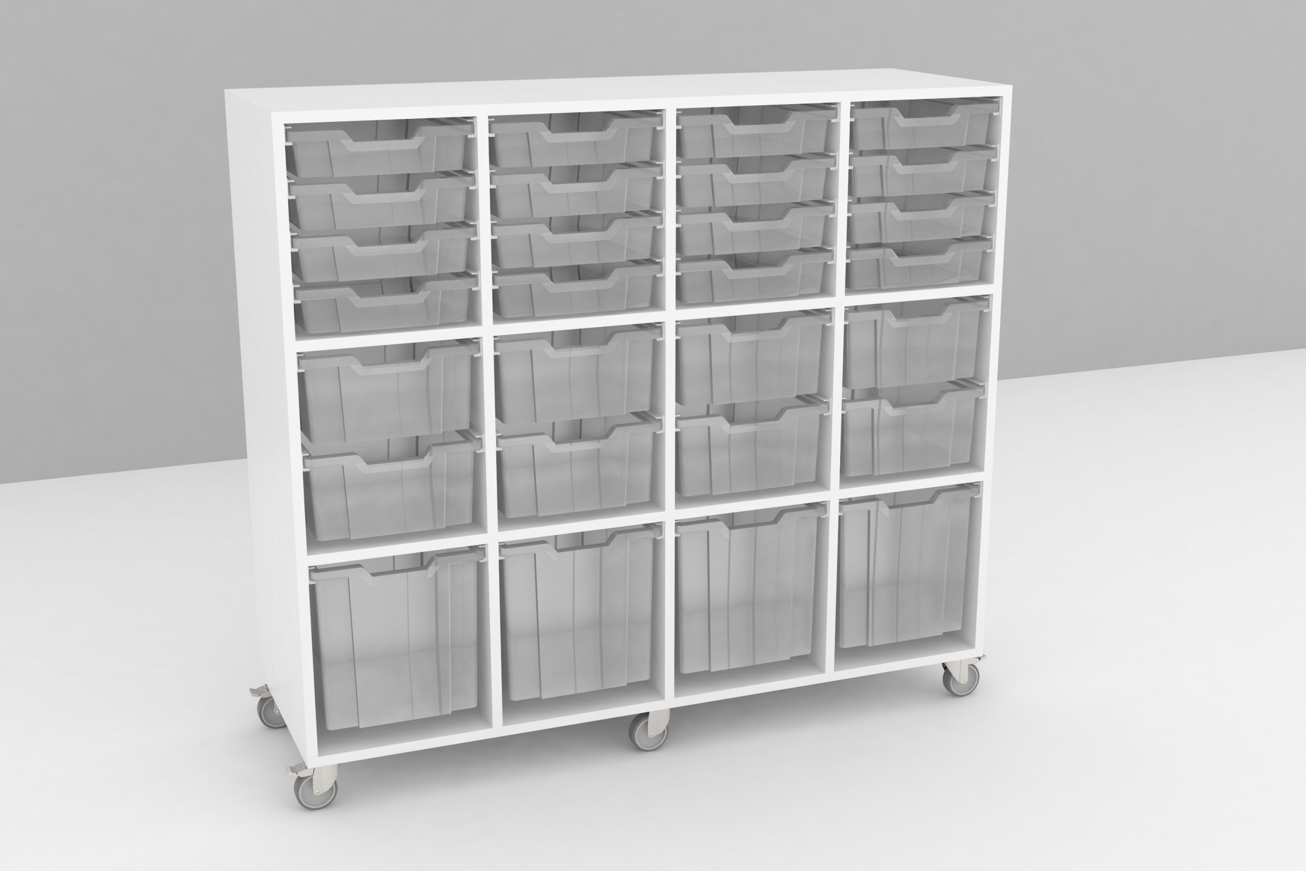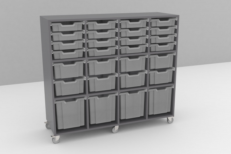 • Leveres med kraftige låsbare hjul og med 19mm bagbeklædning.
