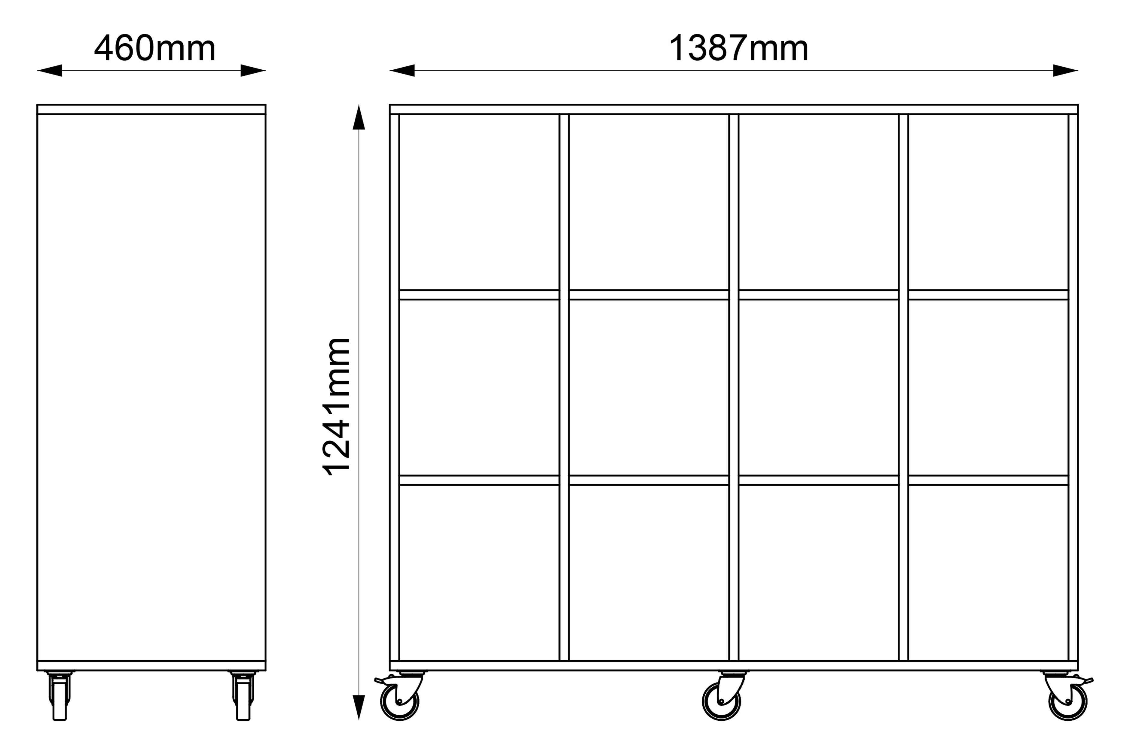 • Ønskes reolen væghængt, leveres den uden hjul og med ophængsliste.